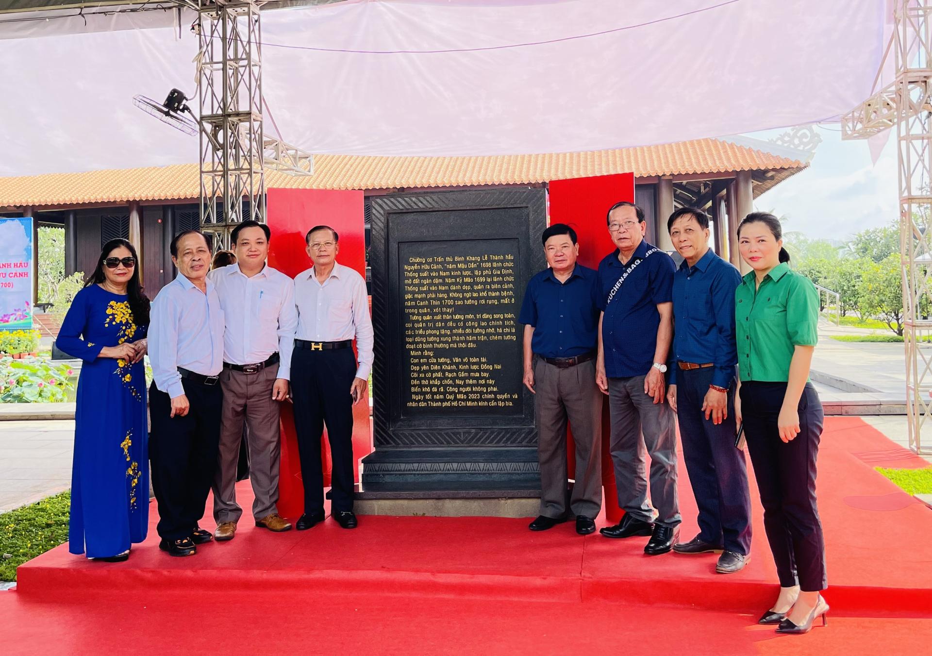 Đoàn đại biểu lãnh đạo TP HCM tại lễ công bố nội dung văn bia Đức lễ Thành hầu Nguyễn Hữu Cảnh