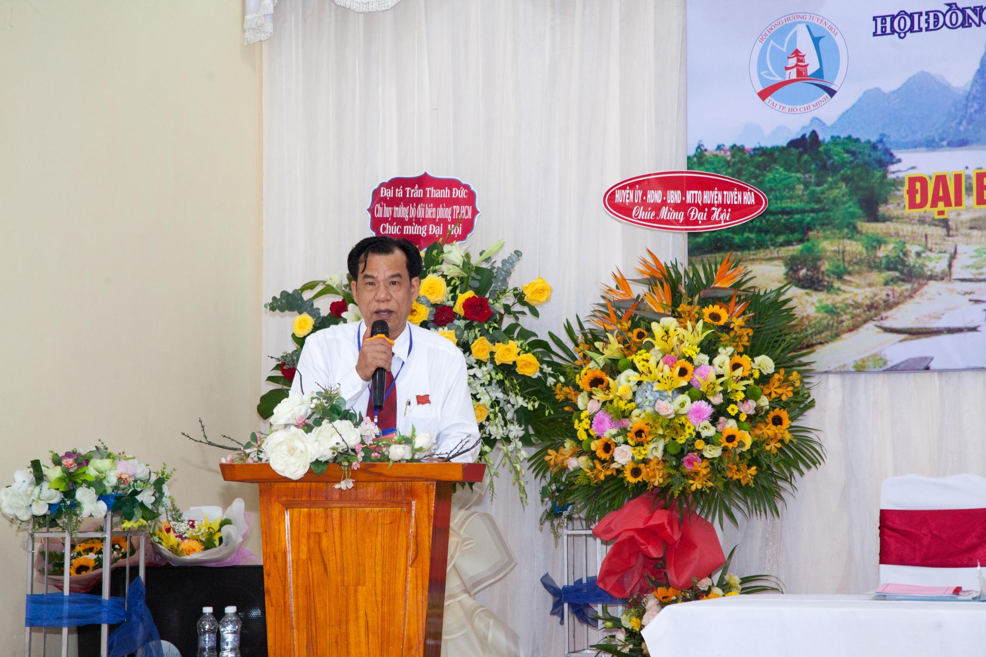 Thay mặt Đoàn Chủ tịch tôi xin trân trọng báo cáo với các đ/c Lãnh đạo huyện nhà, Hội tỉnh, quý vị đại biểu và toàn thể Đại hội “Đại hội đại biểu Hội đồng hương huyện Tuyên hoá tại TP.HCM lần thứ I nhiệm kỳ 2022 - 2027" đã thành công tốt đẹp. Ngay sau Đại hội này, BCH và toàn thể hội viên hãy nêu cao tinh thần đoàn kết, phát huy ưu điểm, khắc phục khó khăn, cùng nhau xây dựng Hội ngày càng phát triển lớn mạnh.