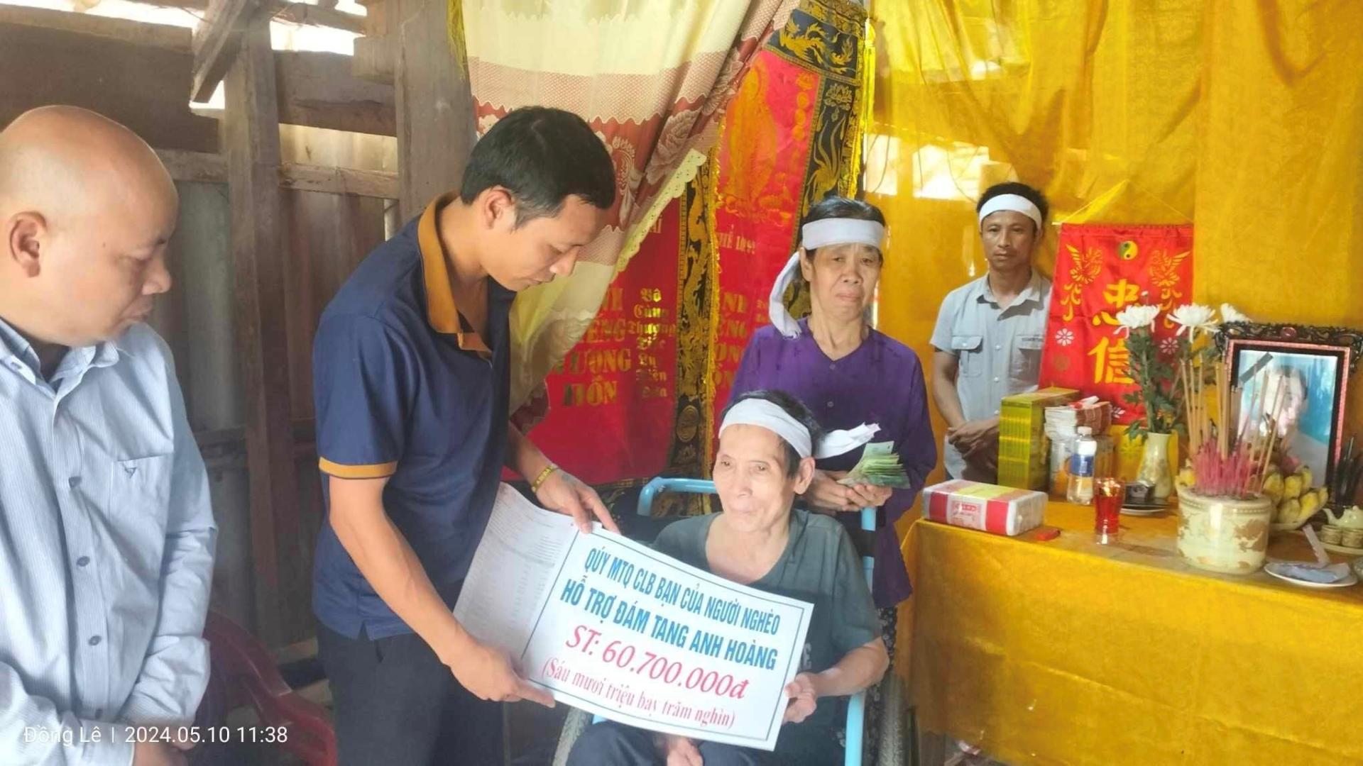 Gia đình tôi đã nhận tổng số tiền hỗ trợ thông qua tài khoản của anh Hà Trọng Sáu, Chủ nhiệm Câu lạc bộ Bạn của người nghèo 73D1 là 60 triệu 700 ngàn đồng, trong đó có 14.200.000 đ của quí bà con cô bác, anh chị em trong Hội.