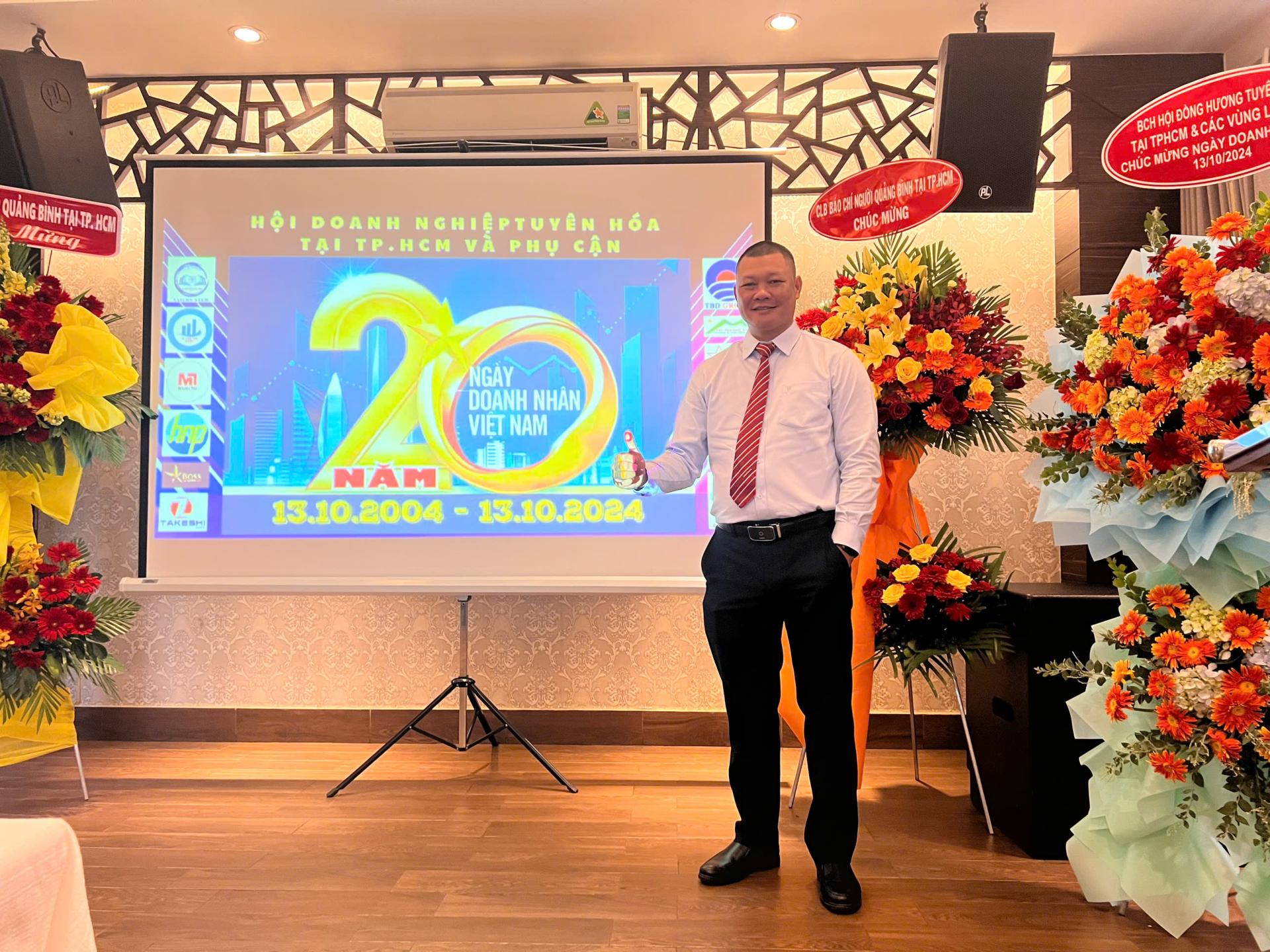 Chiều tối ngày 11-10--2024, Hội Doanh nghiệp huyện Tuyên Hóa tại TP.HCM và phụ cận đã tổ chức thành công buổi họp mặt nhân dịp kỷ niệm 20 năm Ngày Doanh nhân Việt Nam 2024. Chương trình do Tập đoàn Thái Bình Dương đăng cai tổ chức tại TP. Thuận An, tỉnh Bình Dương.