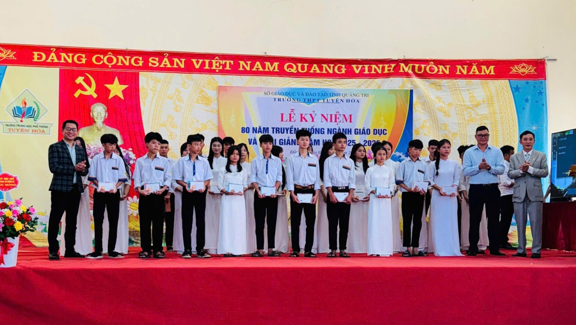 Sáng 5-9-2025, Hội đã phối hợp Trường THPT Tuyên Hóa tổ chức khởi động chương trình "Hướng về trường học quê nhà" bằng việc trao 32 suất học bổng cho học sinh nghèo và tặng sách cho tủ sách nhà trường.