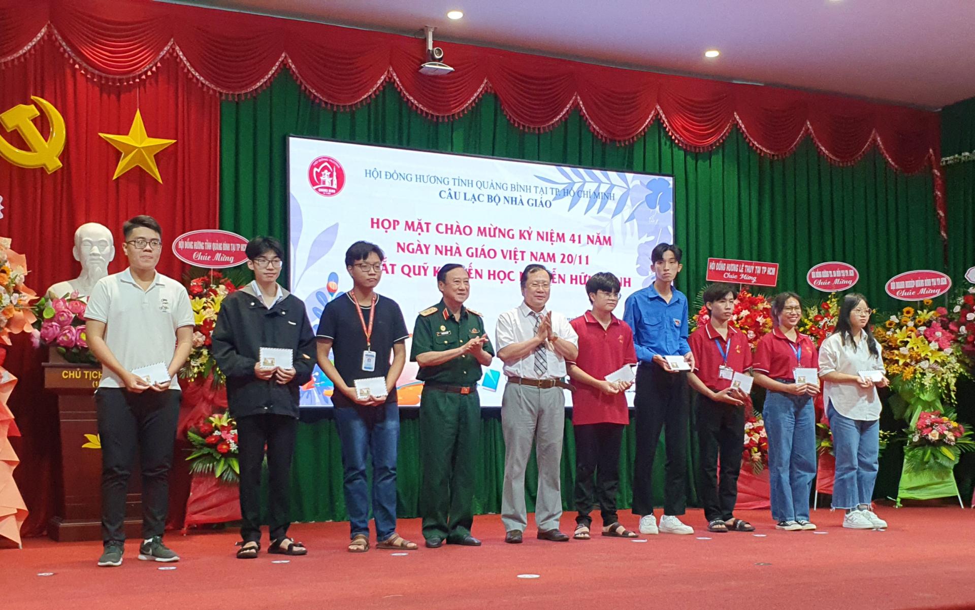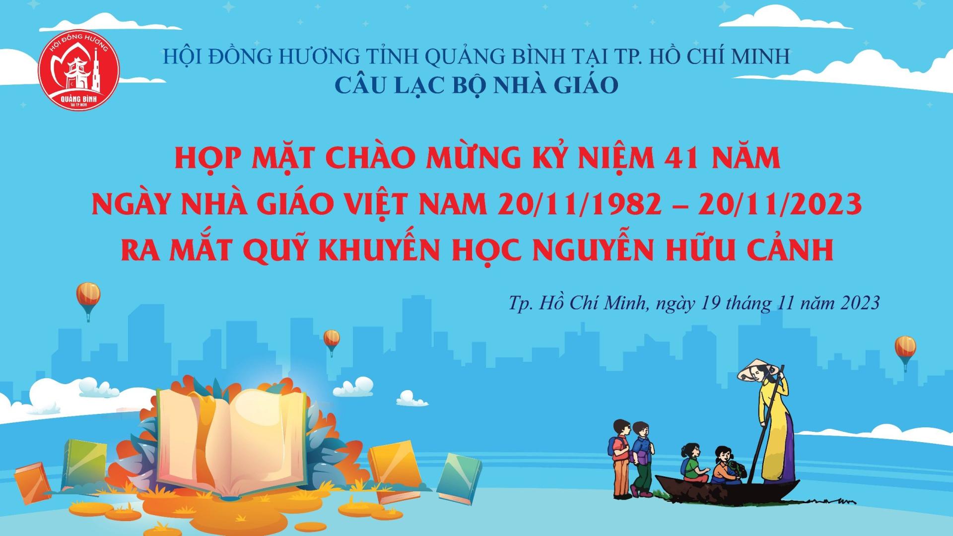 Sáng 19-11-2023, tại Học viện Chính trị Khu vực II, nhân dịp chào mừng 41 năm Ngày Nhà giáo Việt Nam, Hội Đồng hương tỉnh Quảng Bình tại TP.HCM đã công bố quyết định thành lập Quỹ khuyến học Nguyễn Hữu Cảnh và ra mắt Hội đồng quản lý và Ban điều hành, Ban kiểm soát, Ban thư ký của quỹ. Đồng thời, trao 30 suất học bổng đầu tiên của Quỹ khuyến học Nguyễn Hữu Cảnh cho 30 sinh viên người Quảng Bình, có hoàn cảnh khó khăn đặc biệt, đang theo học tại các trường đại học và cao đẳng tại TP.HCM.