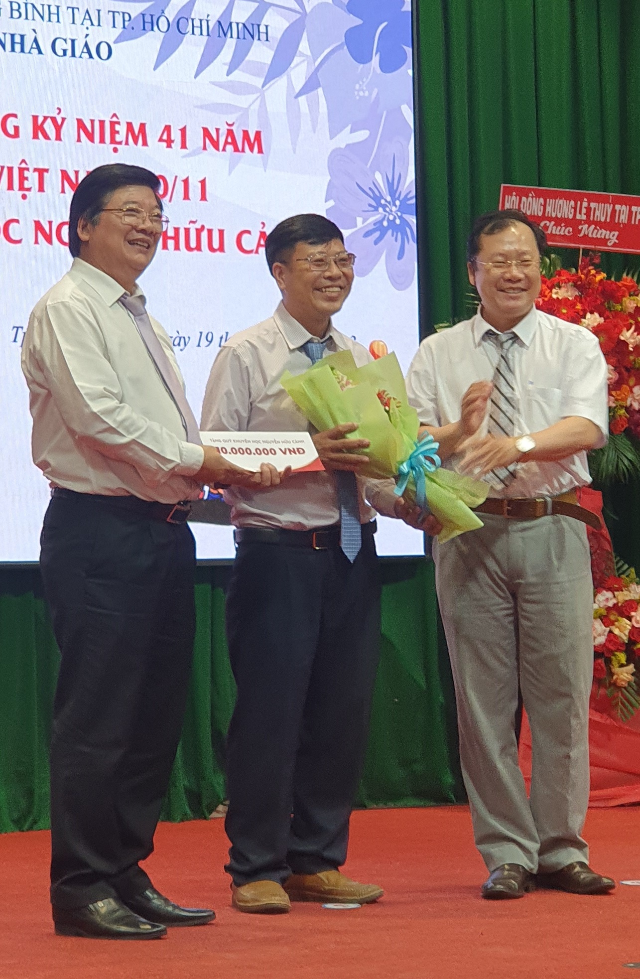 Luật sư Mai Xuân Bình - Chủ tịch Hội Đồng hương Quảng Bình tại TP.HCM chúc mừng các thầy cô giáo nhân Ngày Nhà giáo Việt Nam, đồng thời công bố việc ra mắt Qũy Khuyến học Nguyễn Hữu Cảnh