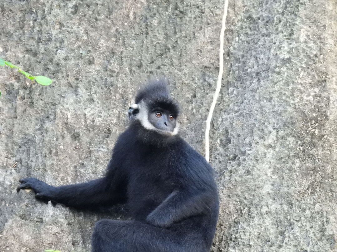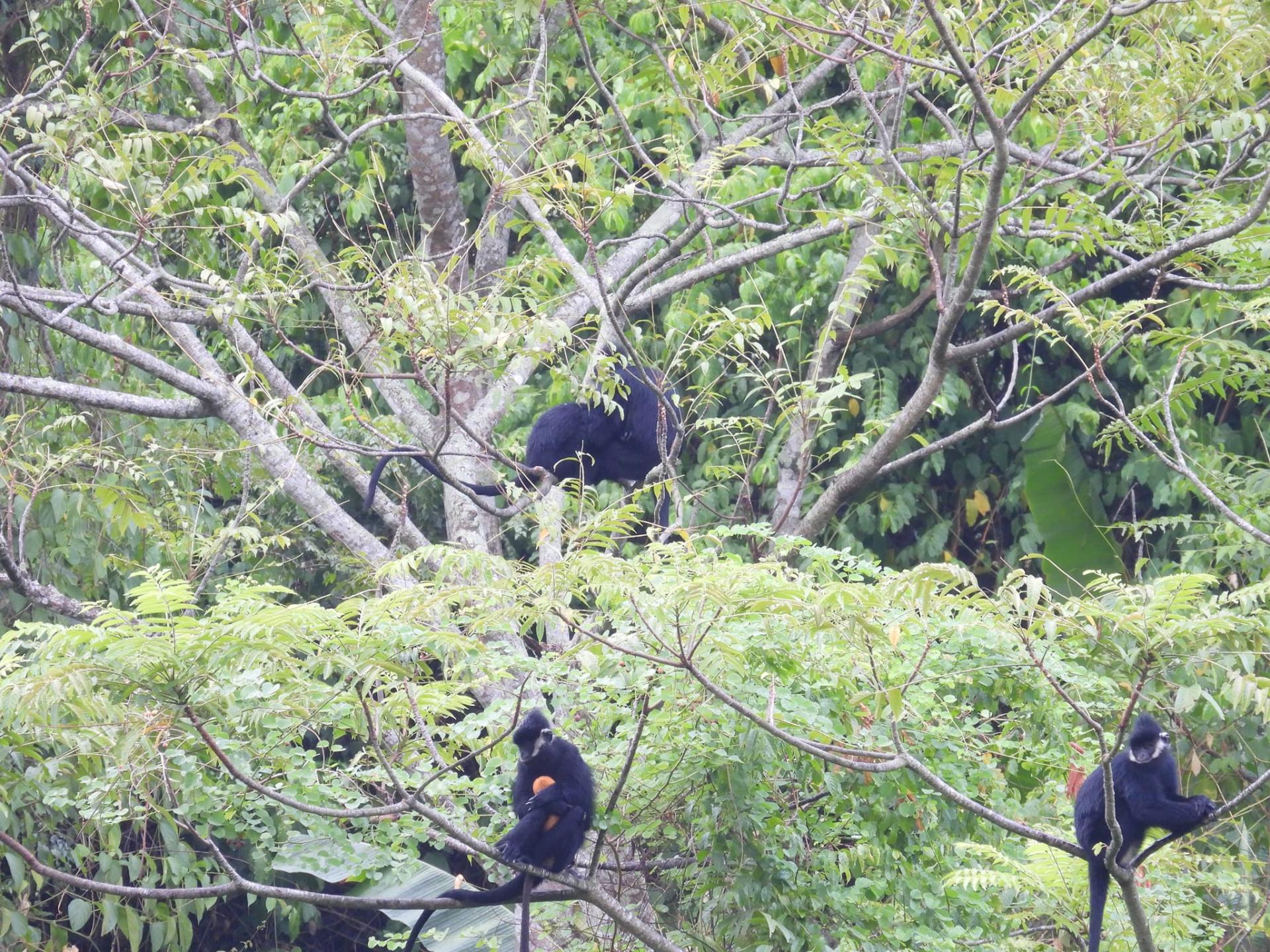 Ông Tú “kéo” chúng tôi ra khỏi những miên man liên tưởng khi nhắc nhở: “Chuẩn bị máy ảnh, đàn voọc bắt đầu chuyền cành”. Từ dưới chân cây gạo cổ, dán mắt vào ống kính, chúng tôi thấy các chấm đen bắt đầu di chuyển, to dần cho đến khi nhìn thấy những con voọc có hai má trắng bằng mắt thường. Chúng vui đùa với nhau trên cây, trên các mỏm đá cheo leo, càng lúc chúng càng “diễn sâu” hơn, nhiệt tình hơn. Quả thật, được ngắm đàn voọc dễ thương, hiền lành ngay ở khu dân cư là khá thú vị, nên thu hút được nhiều người yêu thiên nhiên. Ðiều đó cũng cho thấy, môi trường sống cho động vật hoang dã được bảo vệ tốt. Theo TS Phạm Quang Tùng, cùng với bán đảo Sơn Trà (Ðà Nẵng), Thạch Hóa là vùng dân cư thứ hai ở nước ta có đàn linh trưởng sinh sống cạnh cộng đồng, cho nên có thể nhìn, xem được. Sáng sớm hoặc chiều tối dễ dàng ngắm voọc trên núi đá vôi. Cũng theo TS Tùng, sau tám năm được cộng đồng cư dân và chính quyền bảo vệ nghiêm ngặt, đàn voọc Hà Tĩnh (linh trưởng quý hiếm có tên trong sách đỏ) ở hai xã Thạch Hóa và Ðồng Hóa sinh trưởng nhanh chóng. Theo kết quả nghiên cứu, điền dã cuối tháng tám vừa qua của nhóm các cán bộ Viện Phát triển bền vững tài nguyên thiên nhiên và Bảo vệ đa dạng sinh học thì hai xã nêu trên có 23 đàn với 148 cá thể voọc. Trong đó có nhiều cá thể voọc đột biến khác lạ, thu hút sự chú ý của các nhà khoa học.